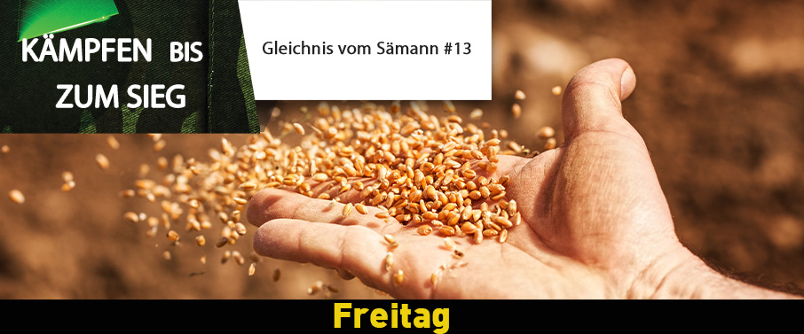 Im Reich Gottes wirkt alles durch Samen: Das Wort ist der Same und das Herz der Boden (Markus 4,14–29). Der Teufel versucht, das Wort am Wurzeln zu hindern, indem er verschiedene Angriffe startet, die wir in den letzten Wochen kennengelernt haben. Doch wer überwindet, wird gute Frucht bringen.